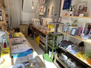 陶器やイラストなど様々なアイテムが店内いっぱいに並びます